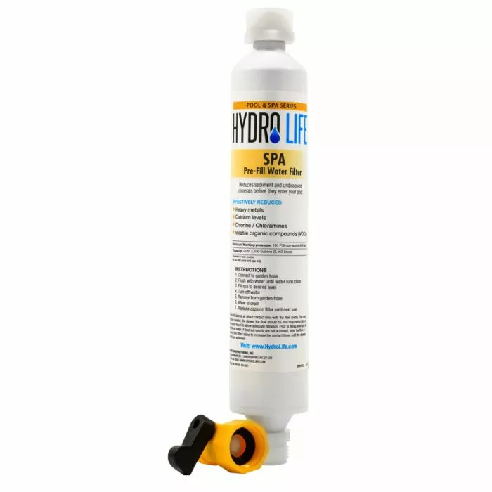 Pre-Filters conveniently connect to any standard garden hose for easy maintenance. Easy to use units that pre-filter stain causing metals before they have a chance to damage your pool or spa. Traps Iron and other metals from muncipal and well water sources during filling and spring top-offs. Available in spa size filtering up to 2500 gallons, Fill water up to 10,000 gallons, and a two-pack for fill water of 20,000 gallons.